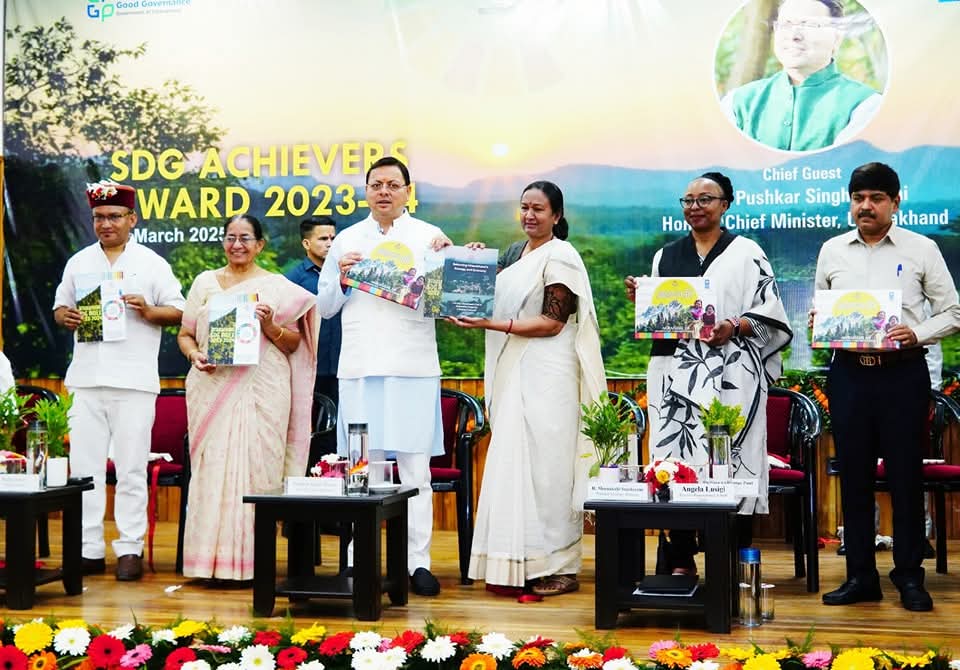 मुख्यमंत्री पुष्कर सिंह धामी ने आज मुख्यमंत्री आवास स्थित मुख्य सेवक सदन में एस.डी.जी अचीवर्स अवॉर्ड समारोह में 3 व्यक्तियों, 09 संस्थानों और 04 औद्योगिक प्रतिष्ठानों को एसडीजी अचीवर्स अवॉर्ड से सम्मानित किया। इस अवसर पर मुख्यमंत्री ने पिछले वर्ष के एसडीजी अचीवर्स अवॉर्ड से पुरस्कृत व्यक्तियों और संस्थानों द्वारा की जा रही अभिनव पहलों की पुस्तक ‘अग्रगामी 2.0’ और एसडीजी इंडेक्स उत्तराखण्ड 2023-2024 का भी लोकार्पण किया।
