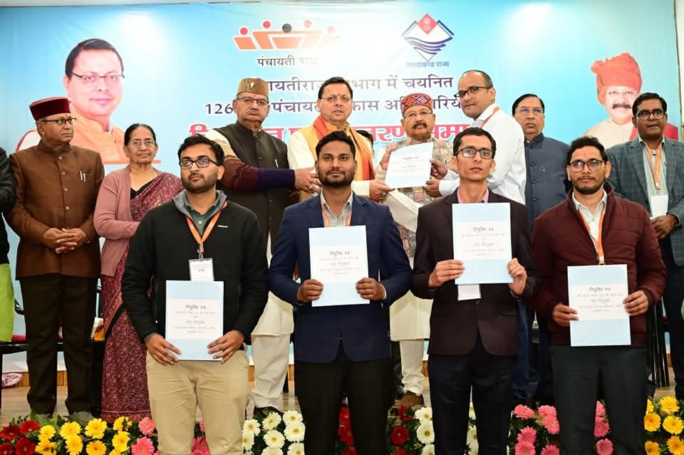 मुख्यमंत्री पुष्कर सिंह धामी ने आज मुख्यमंत्री आवास स्थित मुख्य सेवक सदन में पंचायतीराज विभाग के अन्तर्गत 126 नवनियुक्त ग्राम पंचायत विकास अधिकारियों को नियुक्ति पत्र प्रदान किए। पिछले साढ़े तीन सालों में राज्य में 20 हजार से अधिक युवाओं को सरकारी सेवाओं में नौकरी प्रदान की गई है।