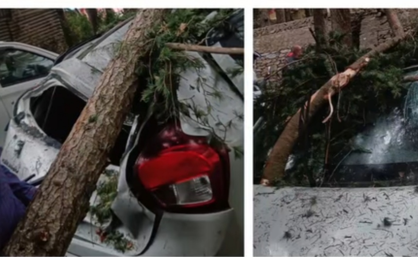 पौड़ी : आंधी और बारिश का तांडव,एक कार के ऊपर गिरा पेड़